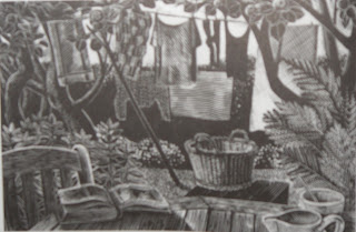 I enjoyed Anna Laetitia Barbauld's Washing-Day, full of the apprehension of bad weather spoiling the wash & the irritation of an uninvited visitor when wash day is in full swing, The woodcut above is Lympstone Washday by Pam Pebworth.
