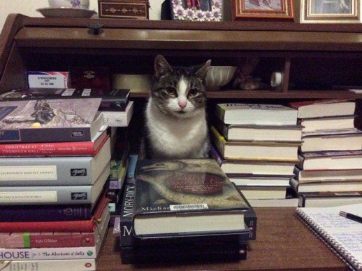 I love this poem which combines books & cats. It's Pangur Bán, a poem written by an Irish monk in the 9th century. It was discovered written on a manuscript & celebrates the life of a scholar monk & his cat, Pangur Bán. I came across this poem again recently at a website called Interesting Literature, in a post about 10 classic poems about cats. I've signed up for the regular emails from the site which highlights interesting facts about a writer or a poem. This translation of Pangur Bán is by Eavan Boland.
